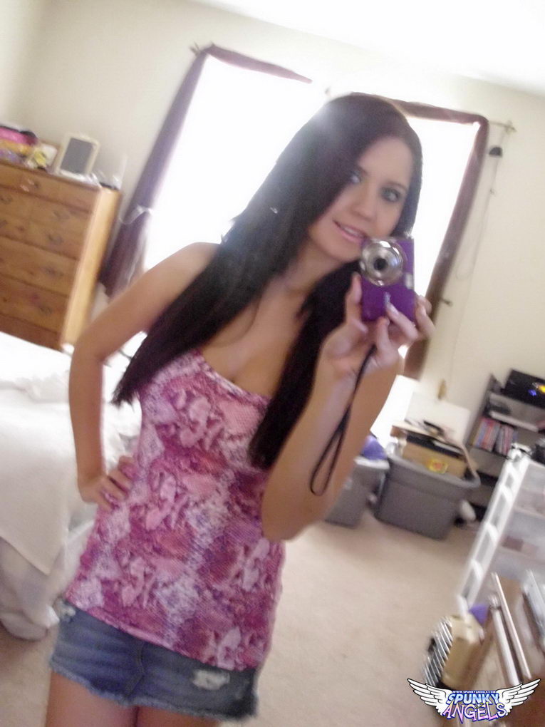 | 19 year old teen Chrissy Marie in denim skirt gets naked to take pictures of her big tits in front of the mirror self shot photos and takes close-ups of her sexy ass and pussy | Nude Candids picture gallery from Spunky Angels |